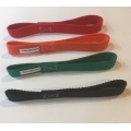 This is an awesome heavy duty strap. Total length is 8 inches, with one loop, and it's made from heavy duty red webbing.