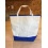 The bottom, handles and binding are from new material. Handles are 1" polypropylene webbing, the bottom material on this bag is Pacific Blue Sunbrella Marine Canvas, the same stuff we use for boat covers, and is very durable. The binding is 1" Sunbrella.