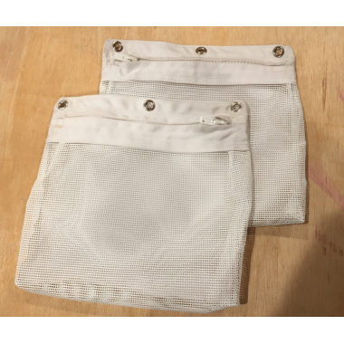 This small mesh and Sunbrella bag was custom designed for the New Viper Class one design but it will fit other boats as well. You can use it to control your halyard and/or protect your valuables in the event you capsize.